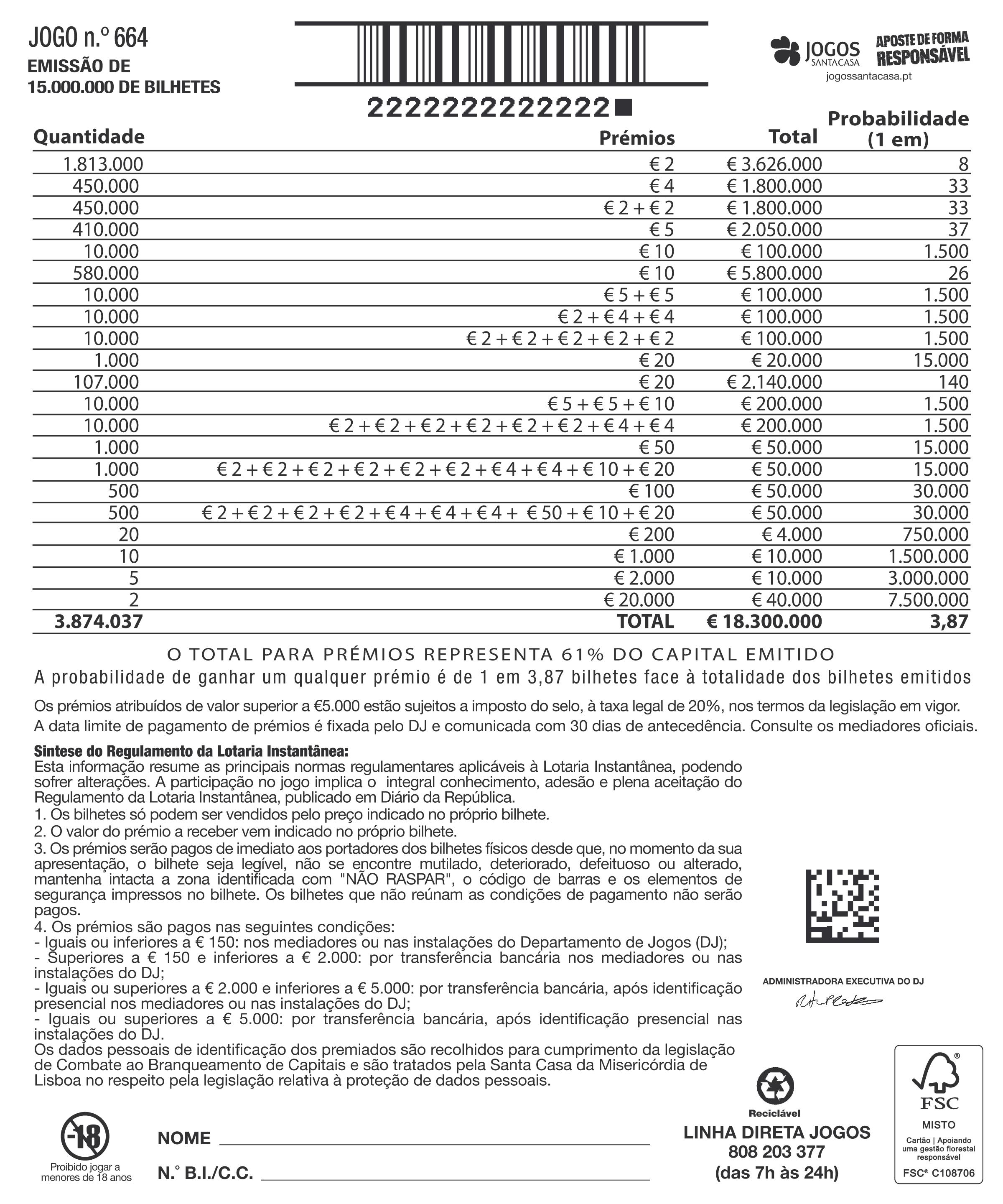 informações adicionais, consulte o seu mediador oficial dos Jogos Santa Casa.