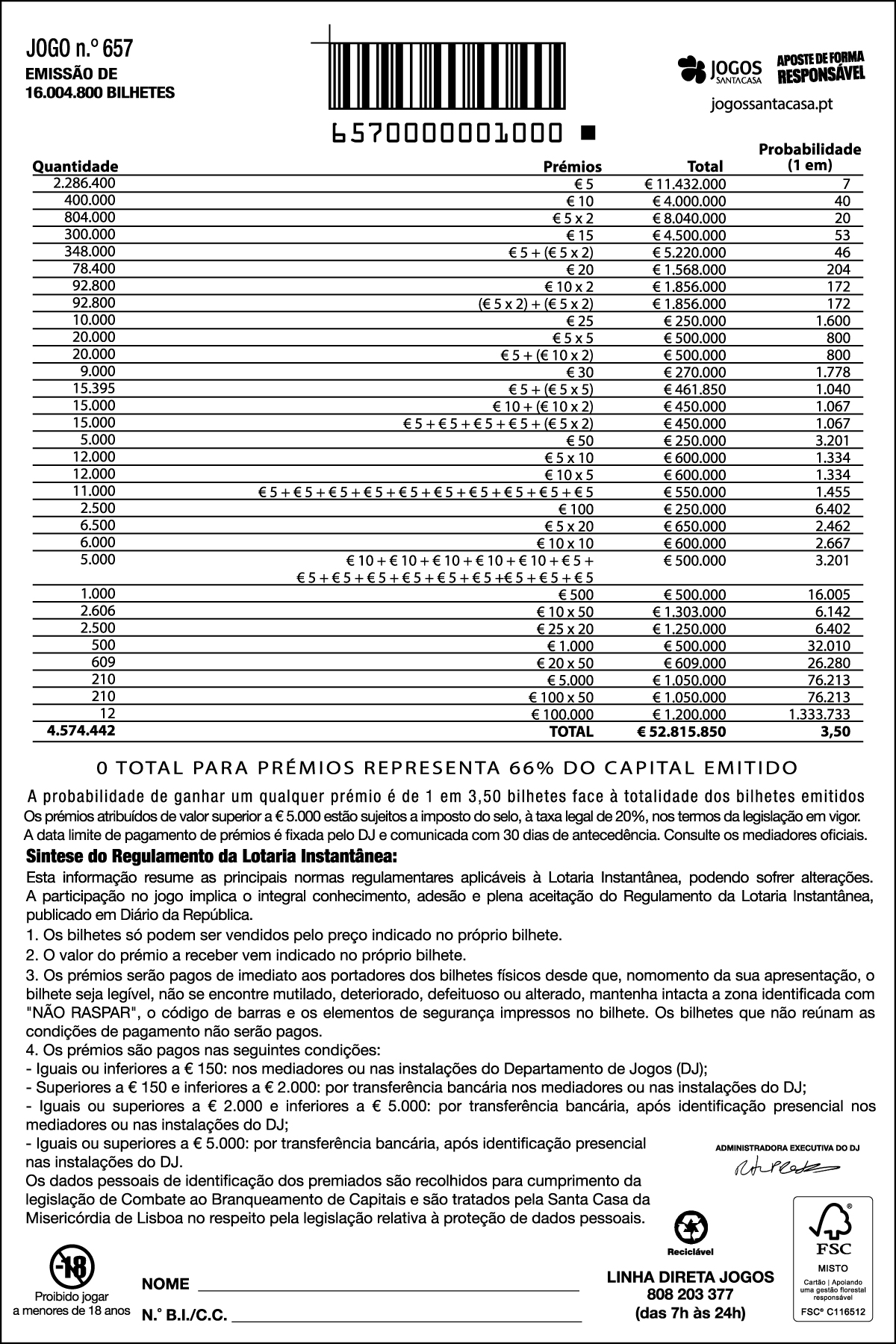 ganha a quantia correspondente a 2, 5, 10, 20 ou 50 vezes o valor do prémio